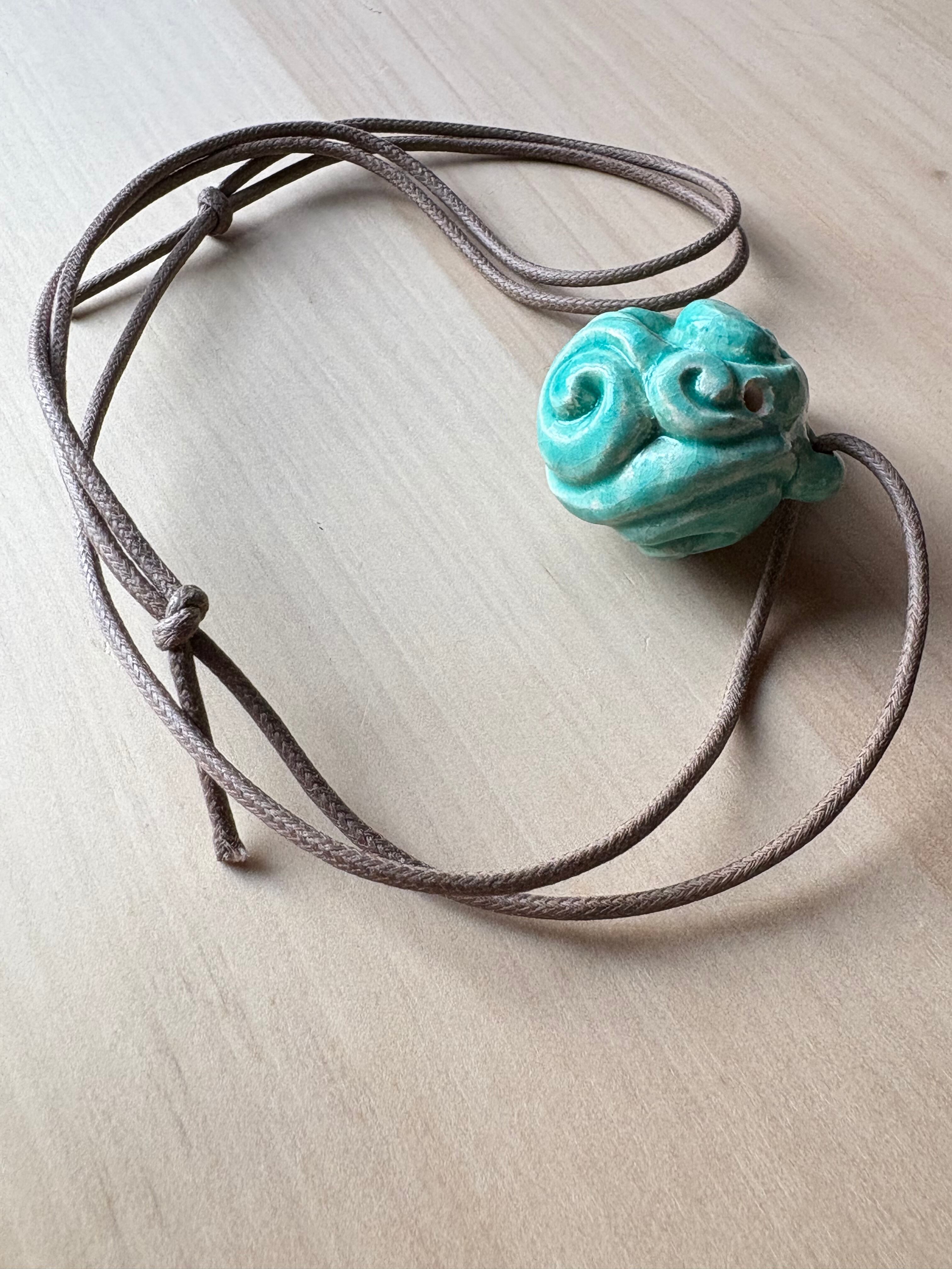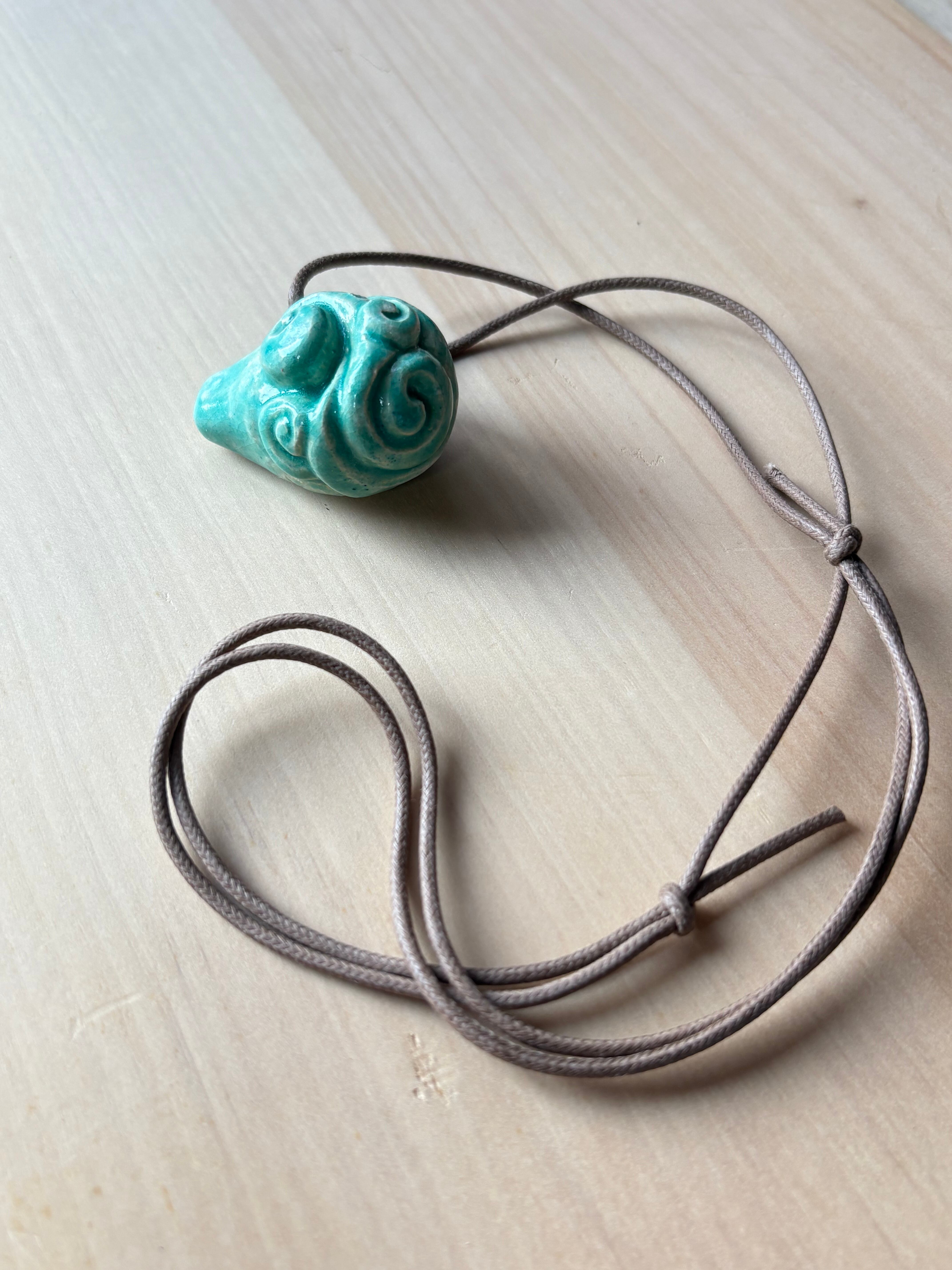 *素材…陶器(白土)、楽焼釉薬仕上げ(無鉛)青緑色
