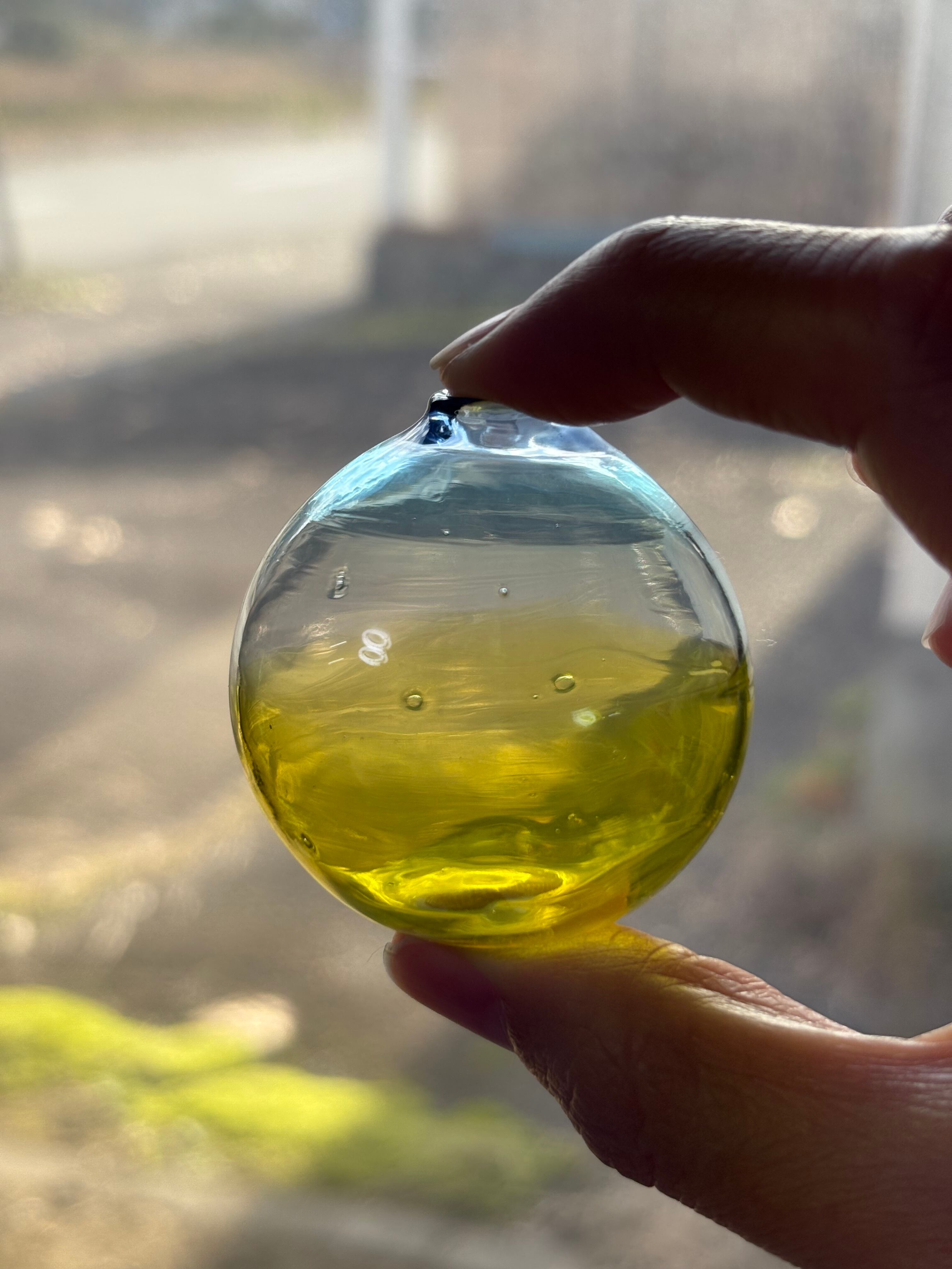 指でつまめるほどの、バーナーブローでお作りした小さな一輪挿しです。