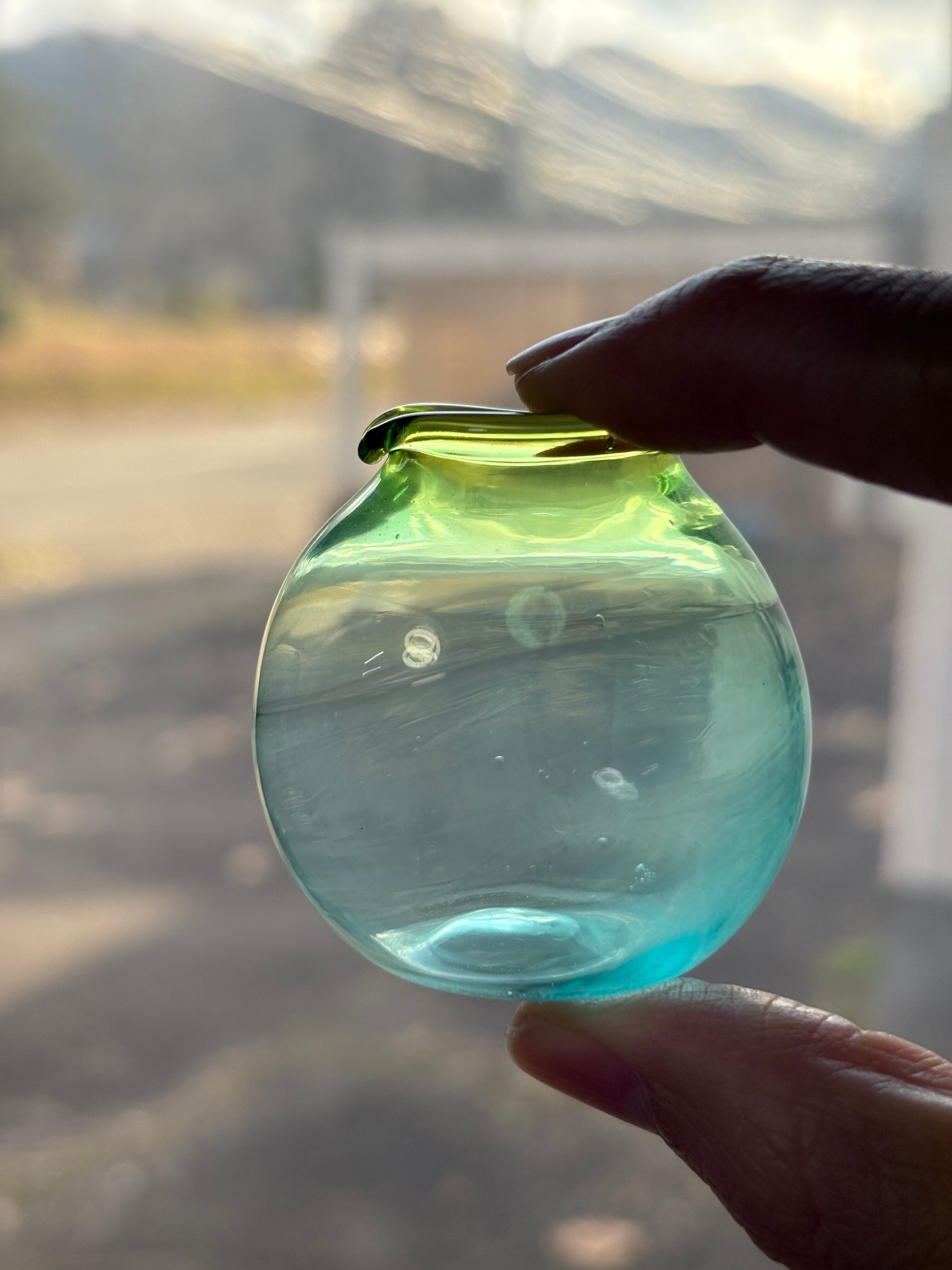 指でつまめるほどの、バーナーブローでお作りした小さな一輪挿しです。