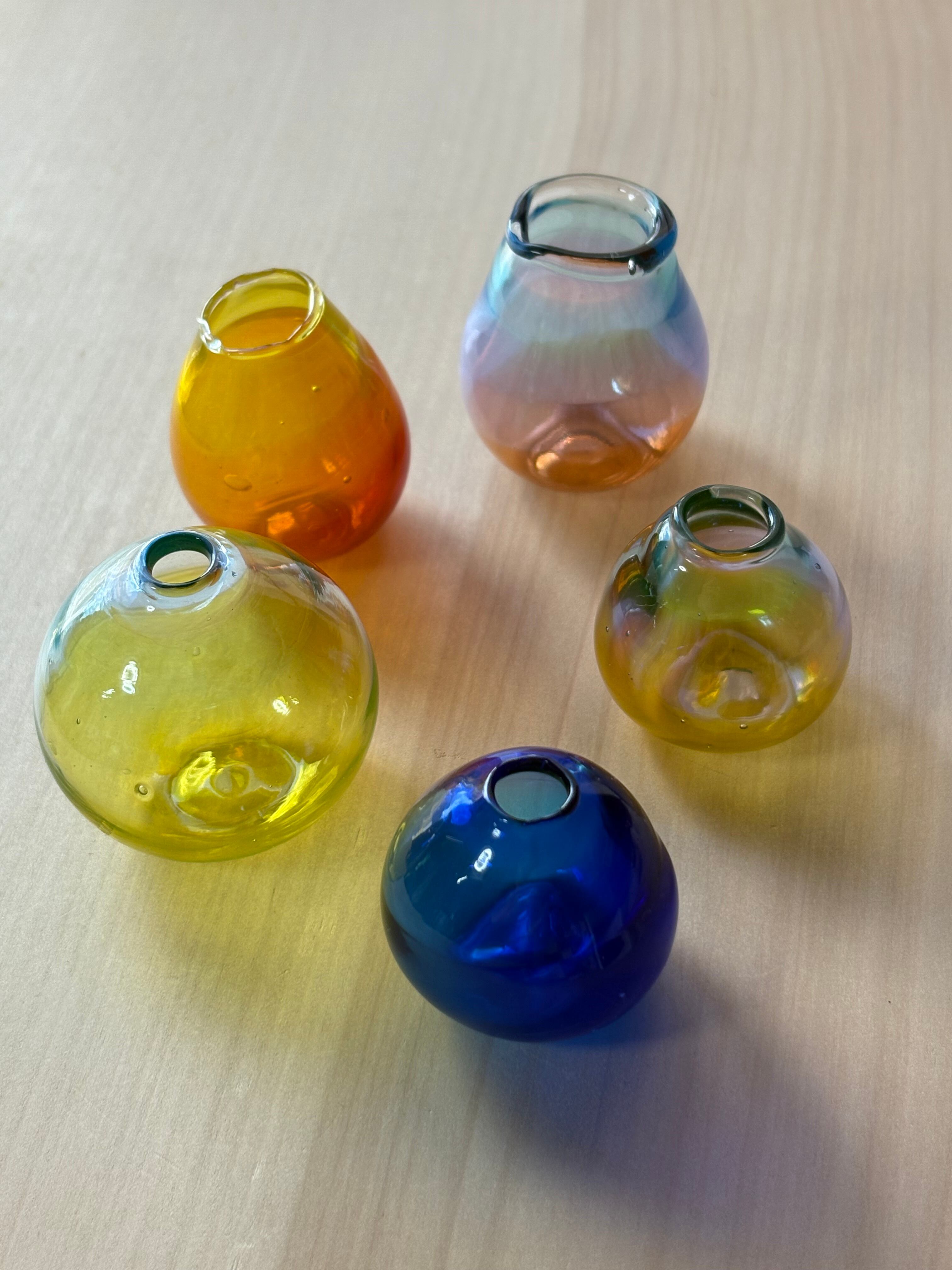 指でつまめるほどの、バーナーブローでお作りした小さな一輪挿しです。
