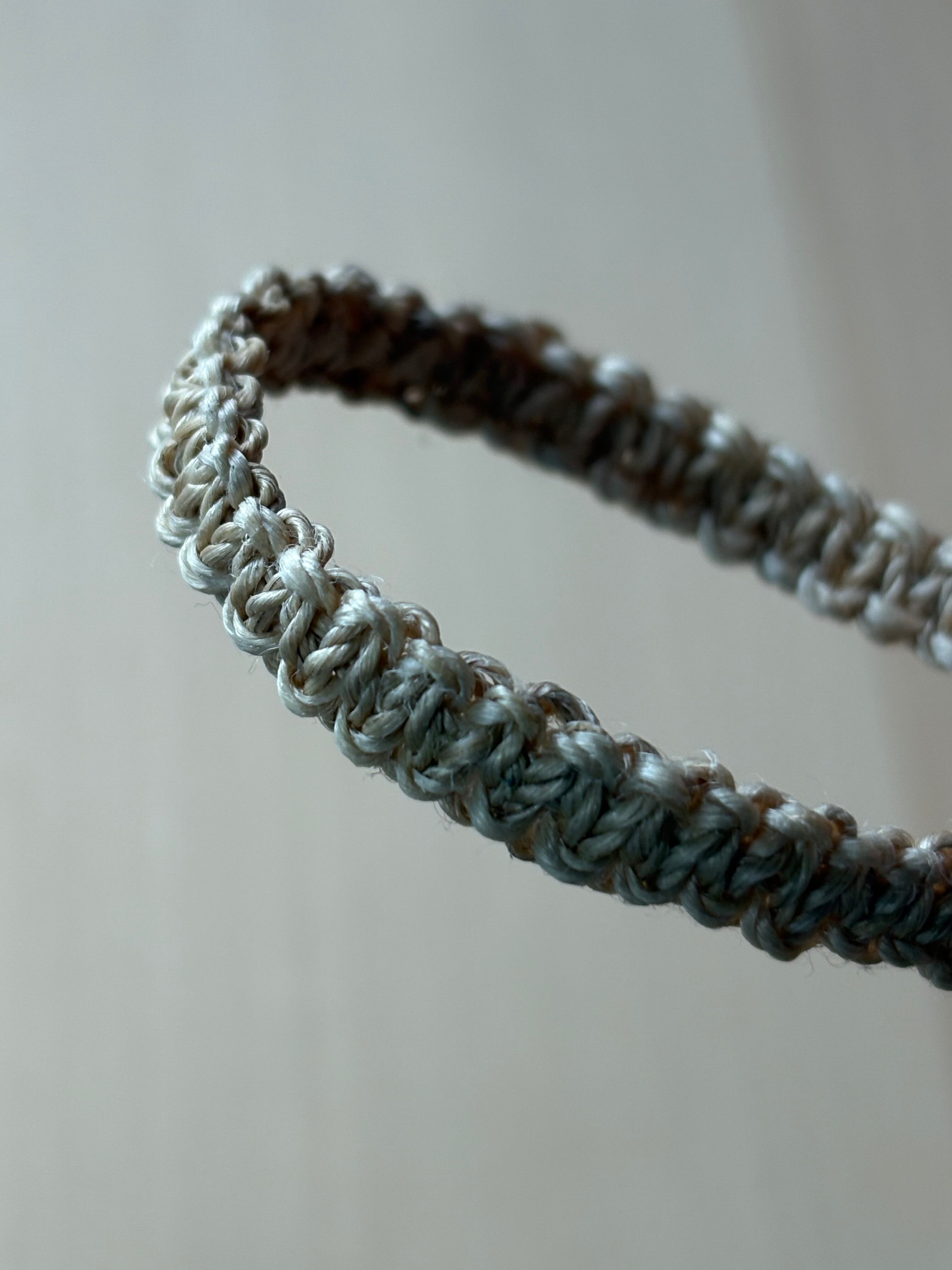 植物の中でも高波動で神聖な力を持つと言われる精麻で紐を撚って、簡単に身につけられるアクセサリーをお作りしました。
