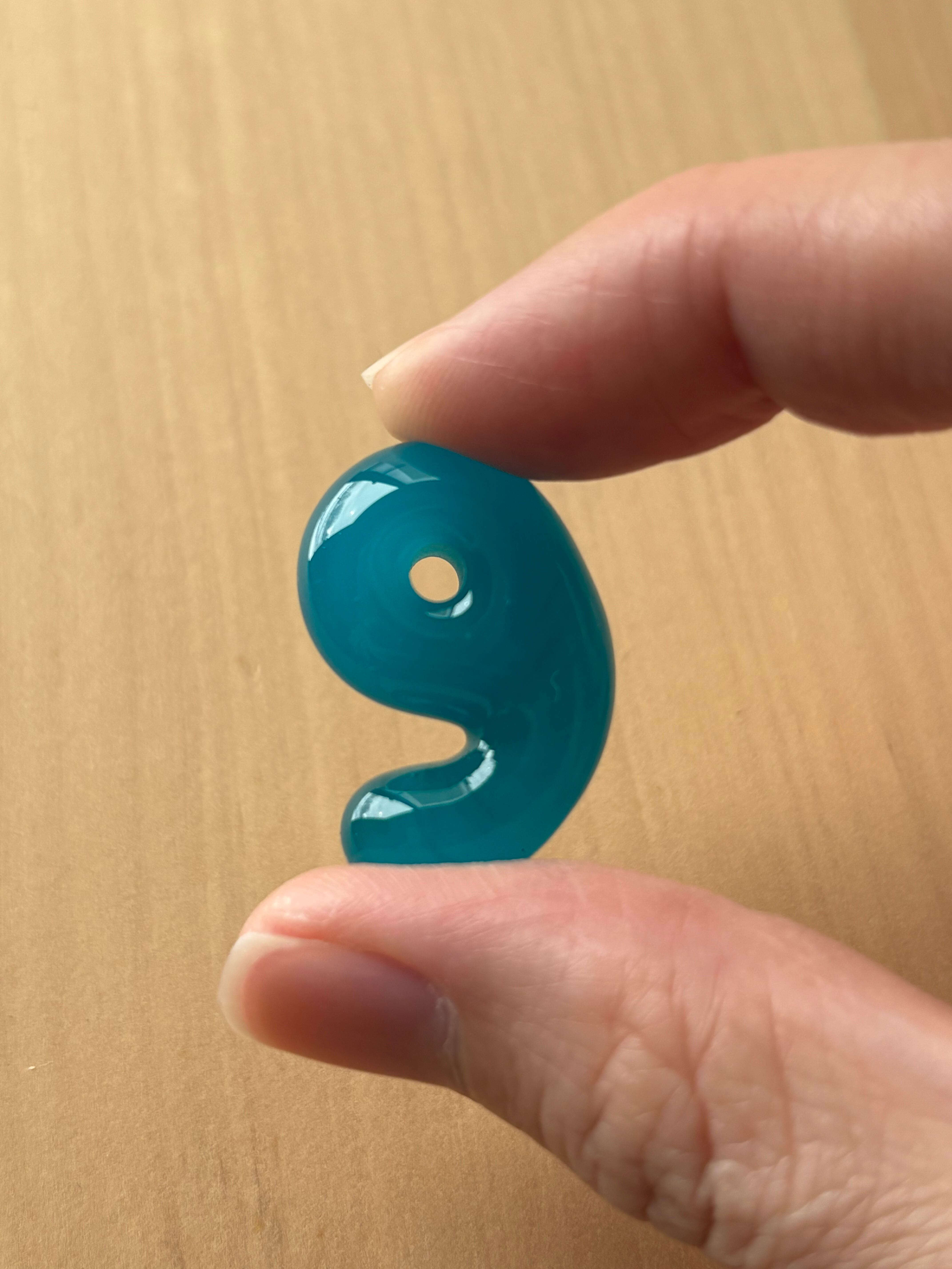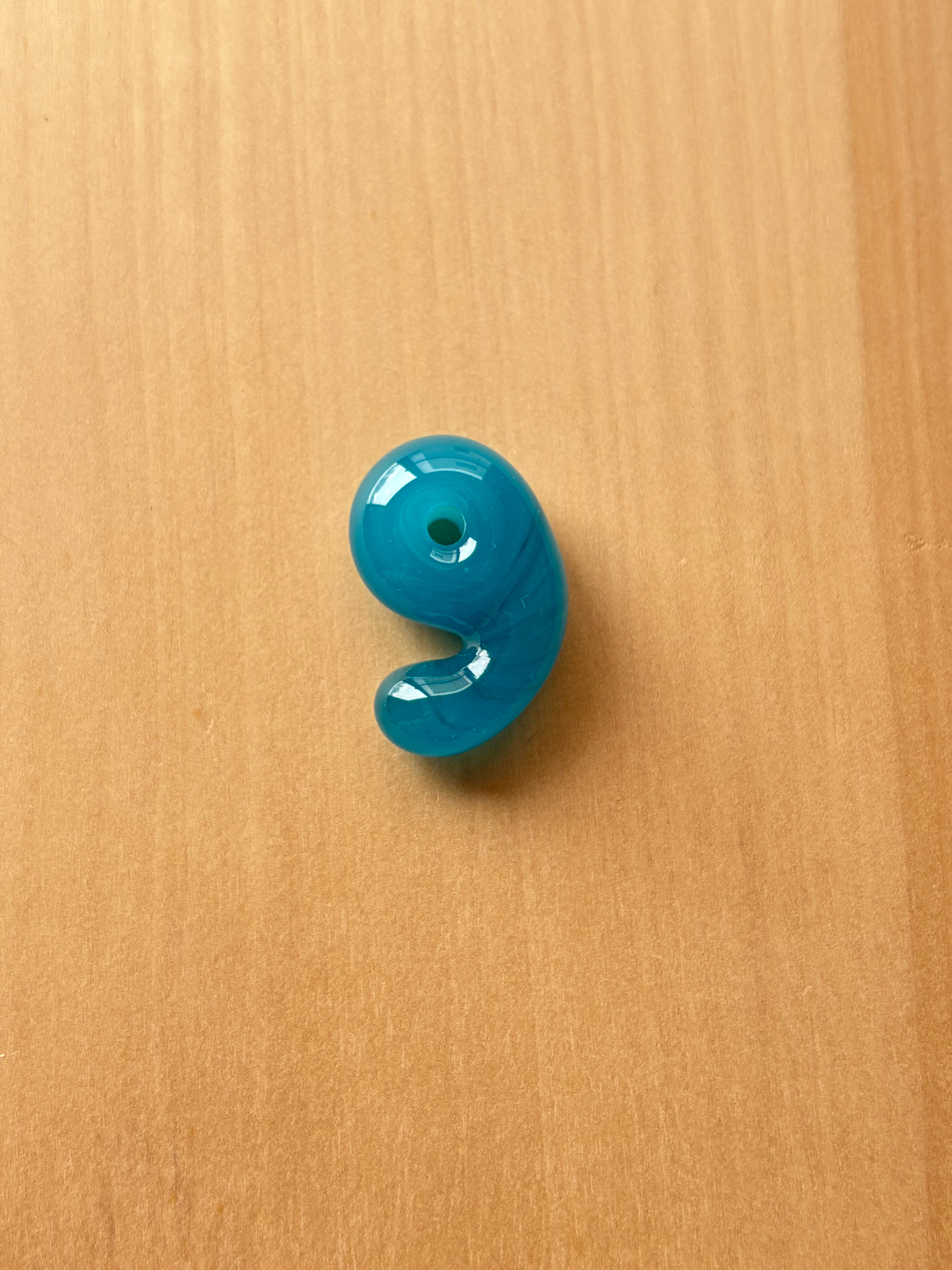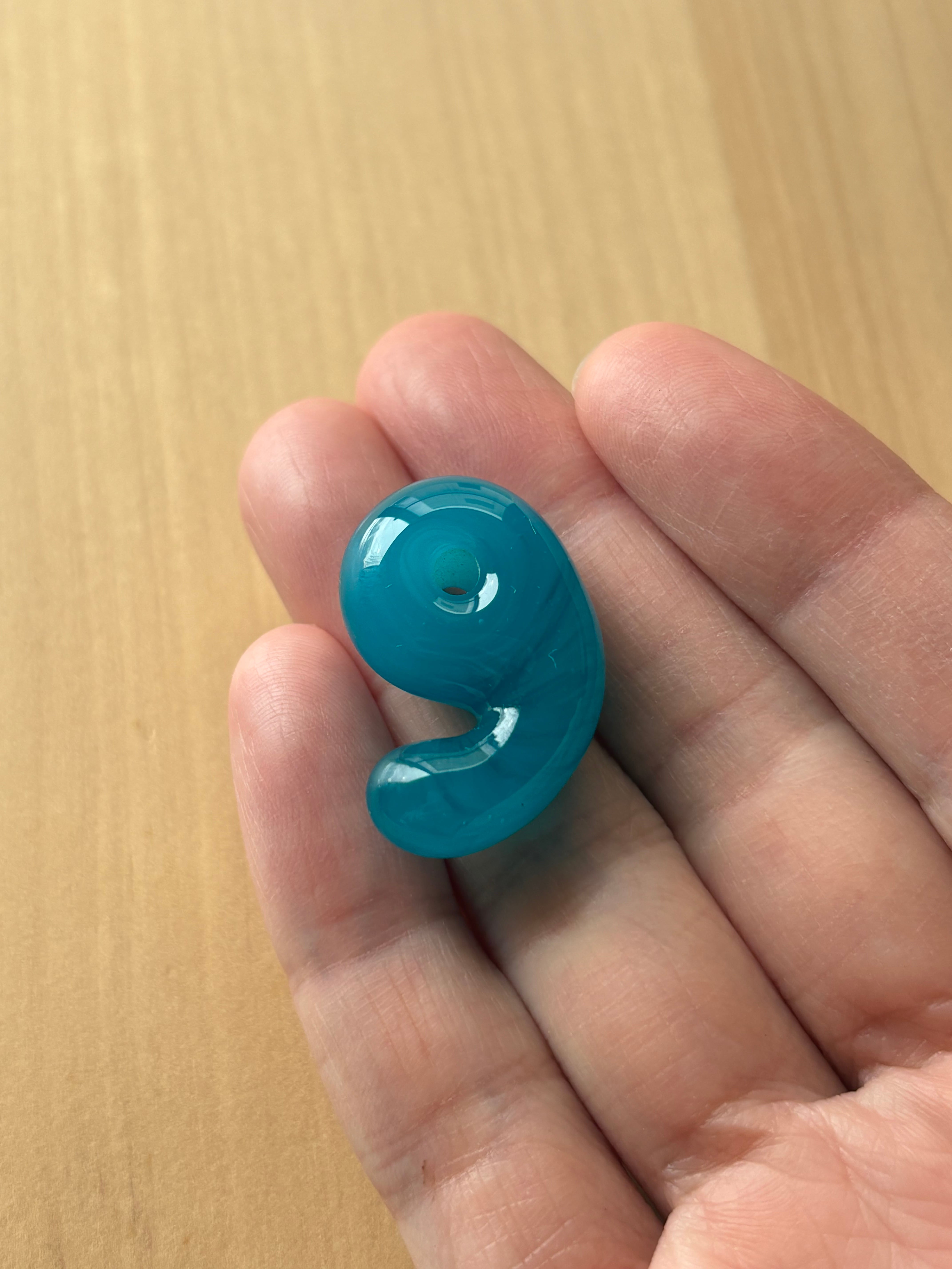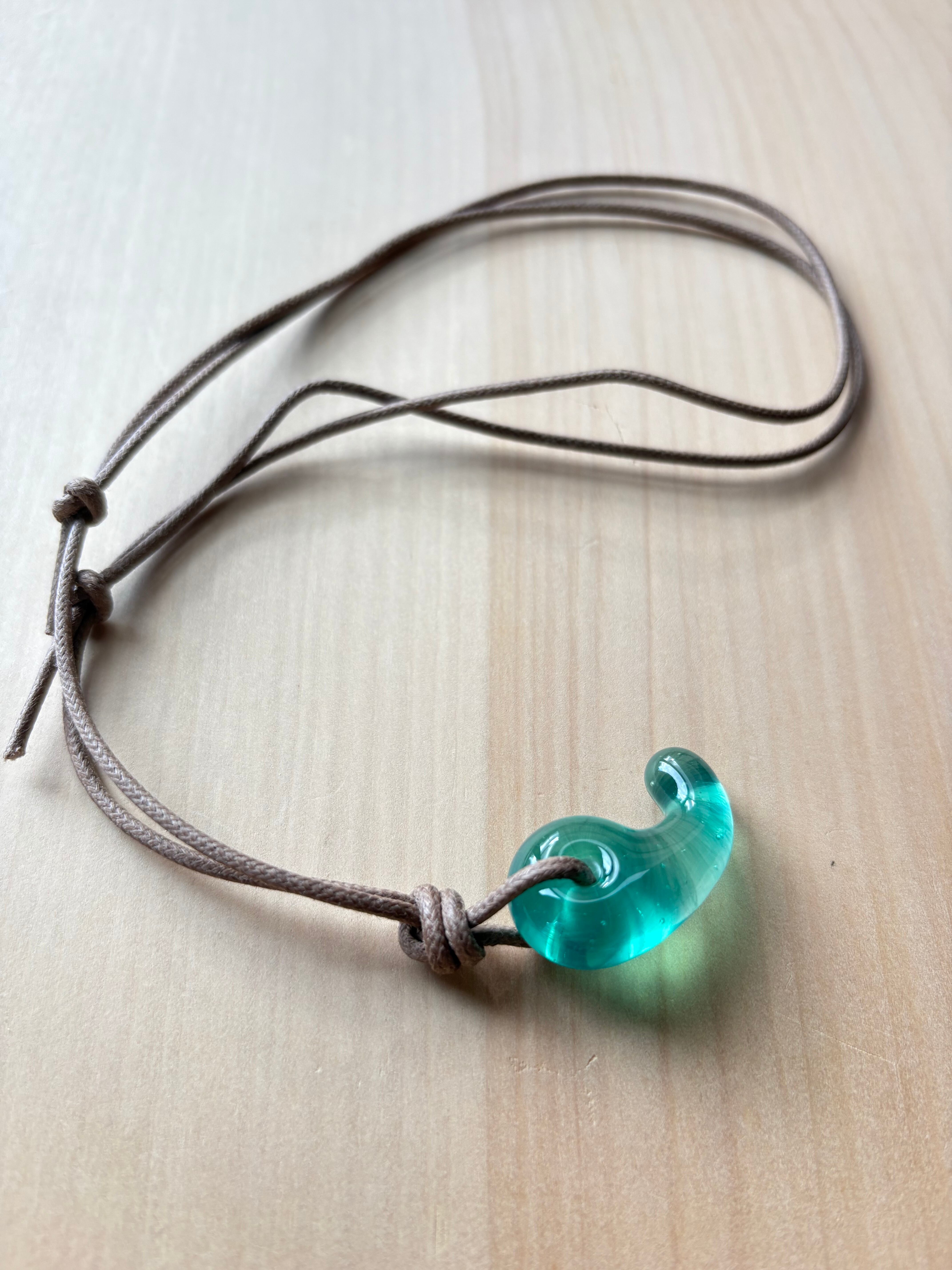 天然石のような揺らぐ模様を持つ、青にも緑にも見える不思議な色の勾玉です。