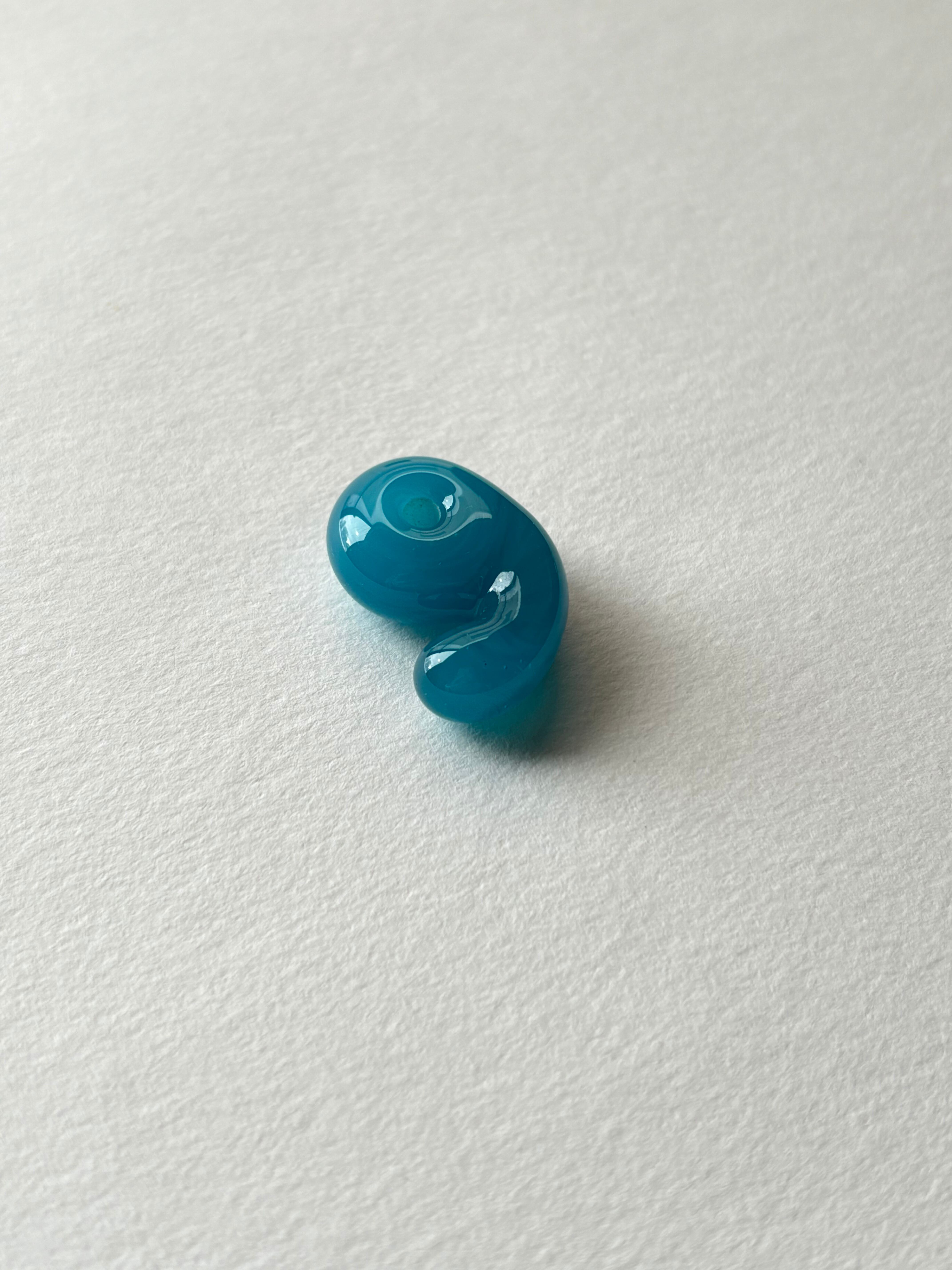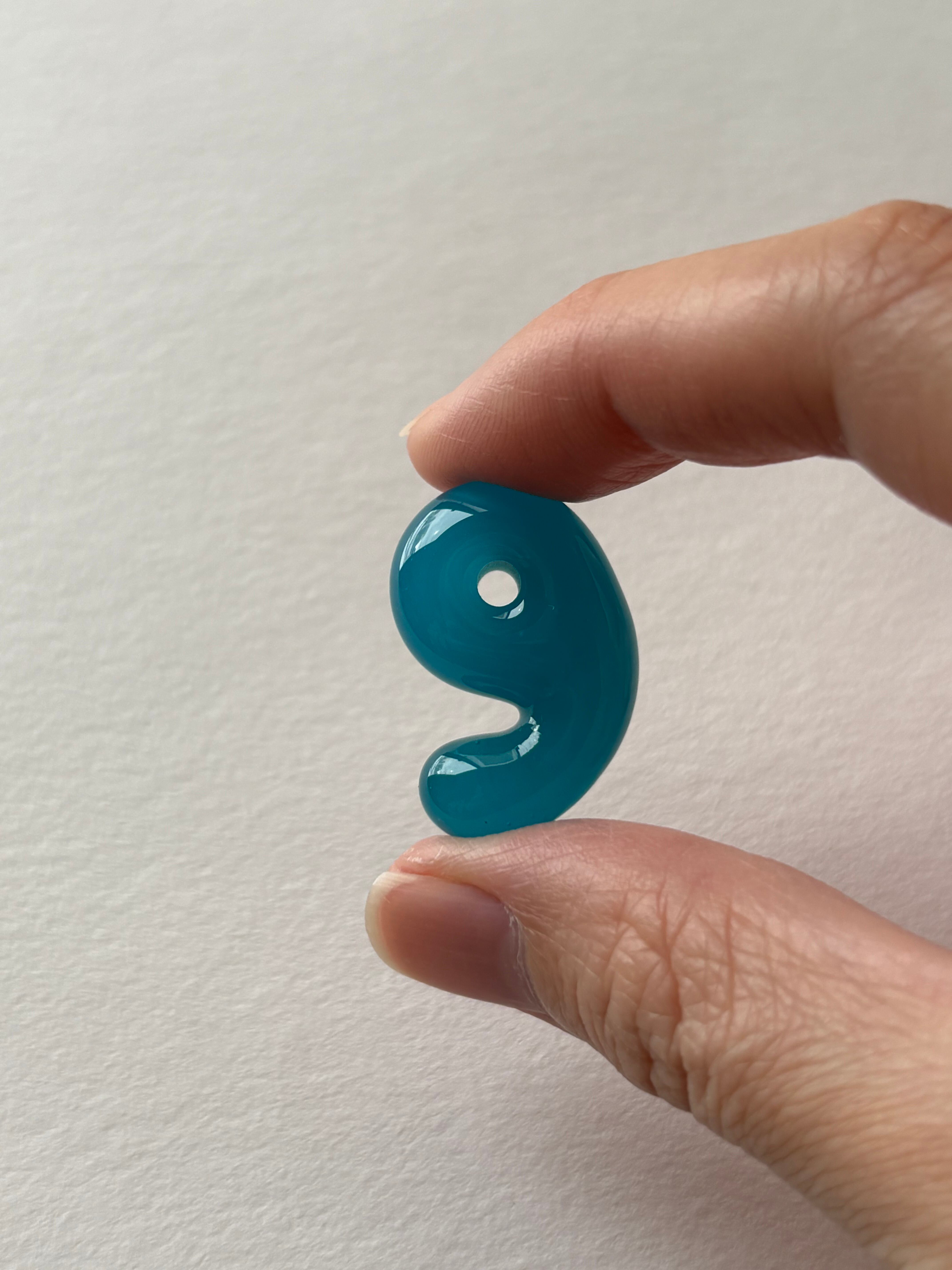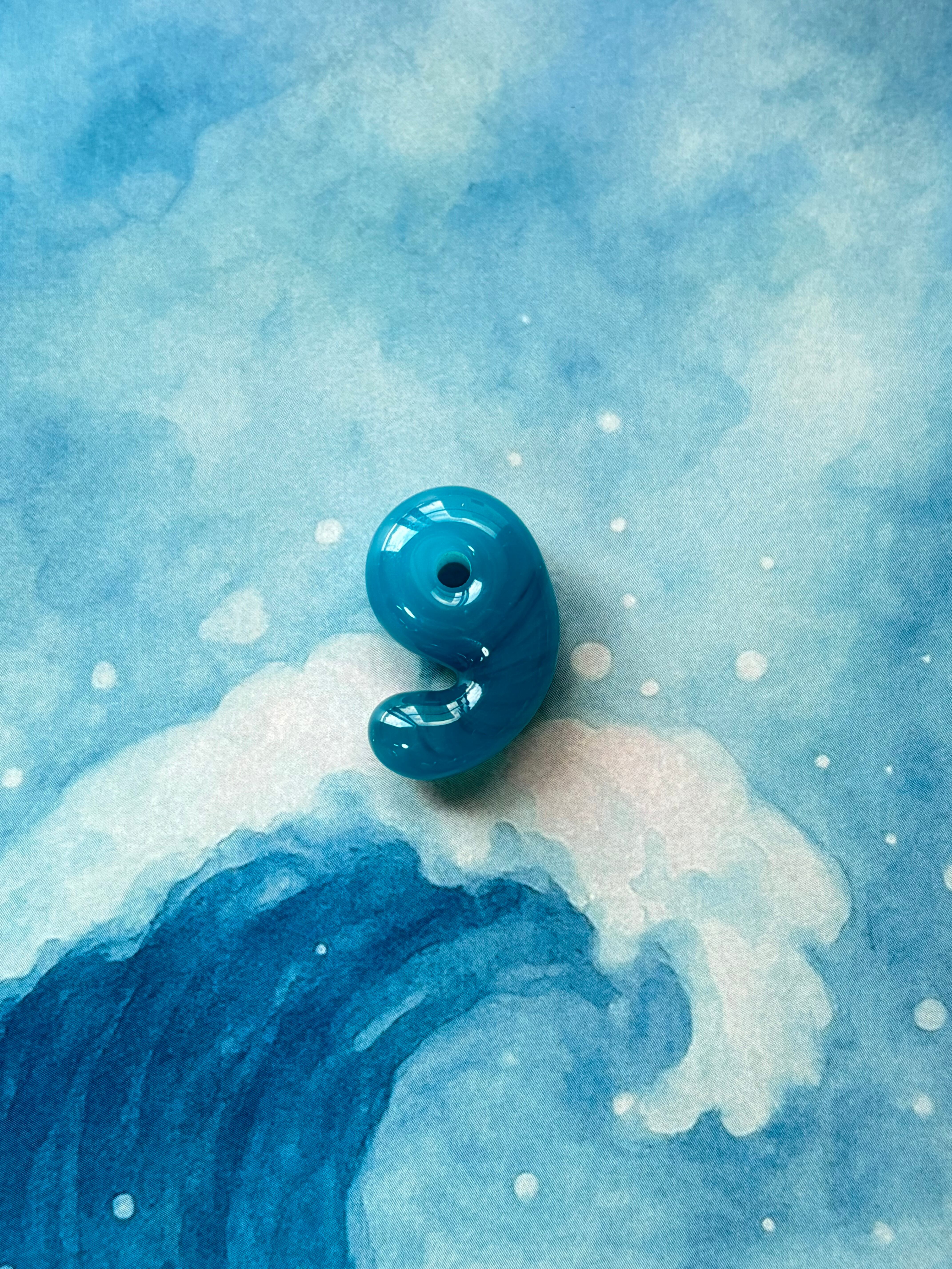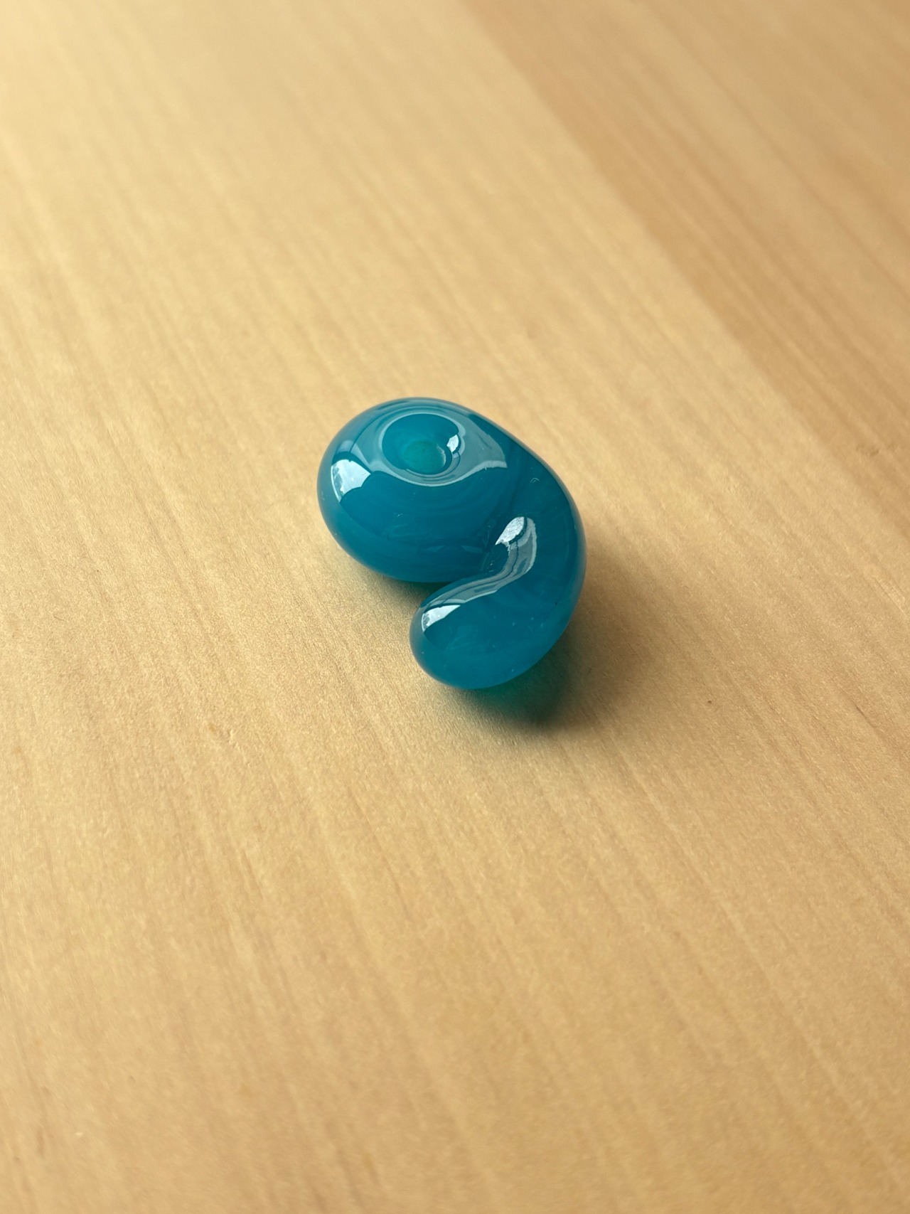 天然石のような揺らぐ模様を持つ、青にも緑にも見える不思議な色の勾玉です。