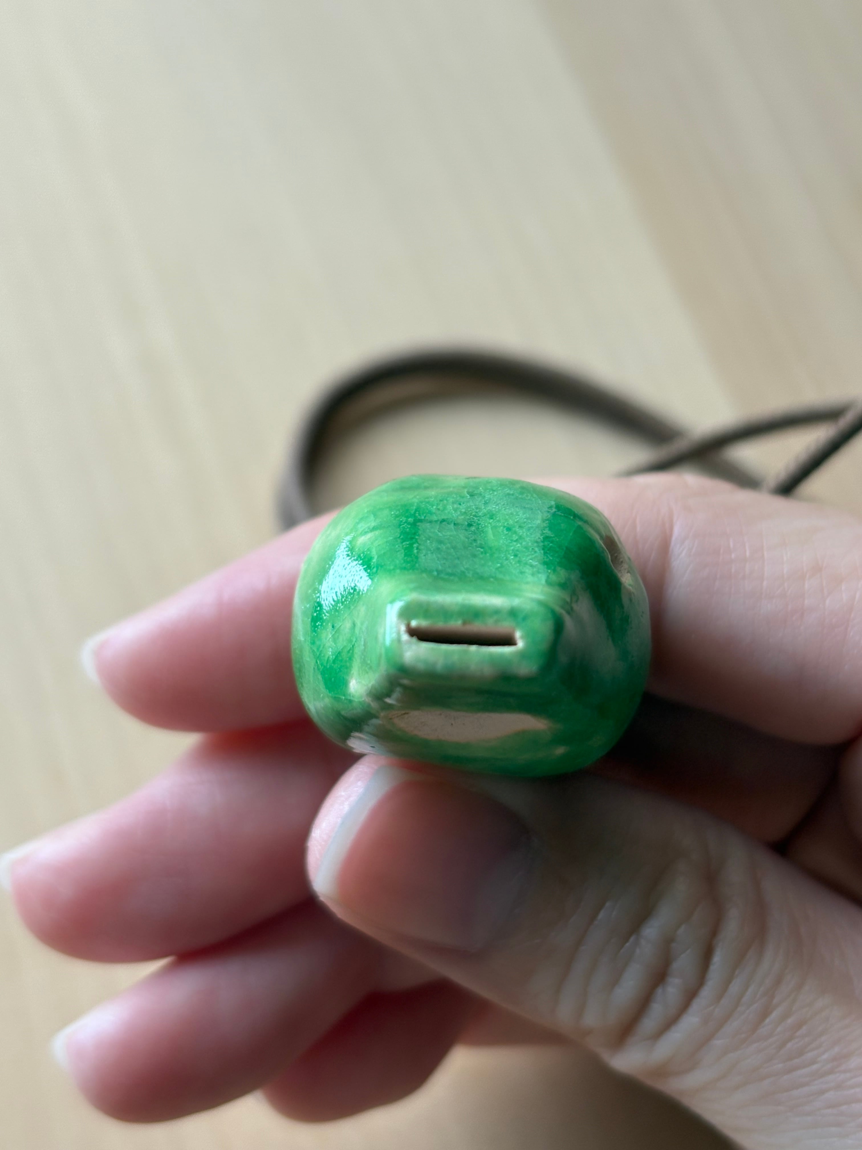 *素材…陶器(白土) 、楽焼釉薬仕上げ(緑、無鉛)