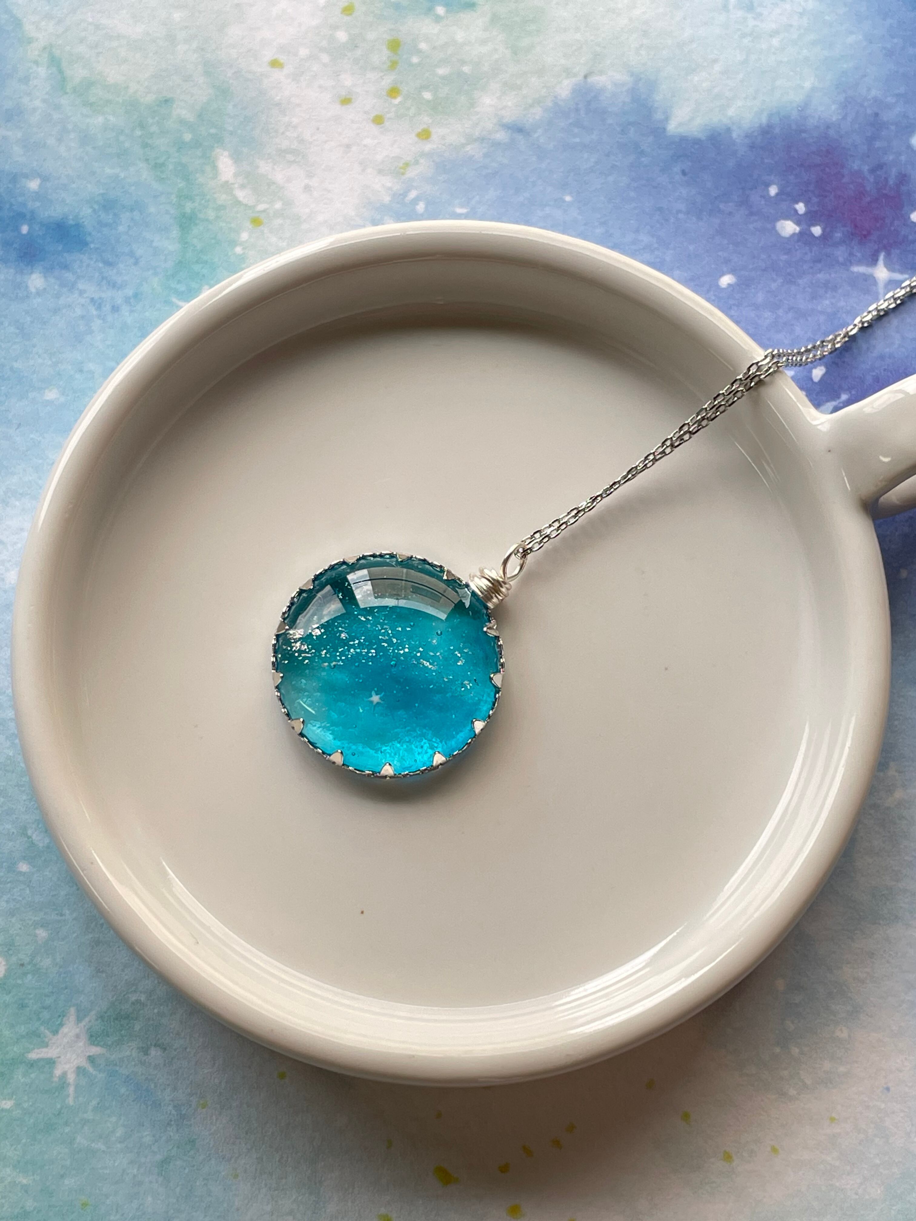 星空模様のガラスのプレートアクセサリー*ネックレス*華